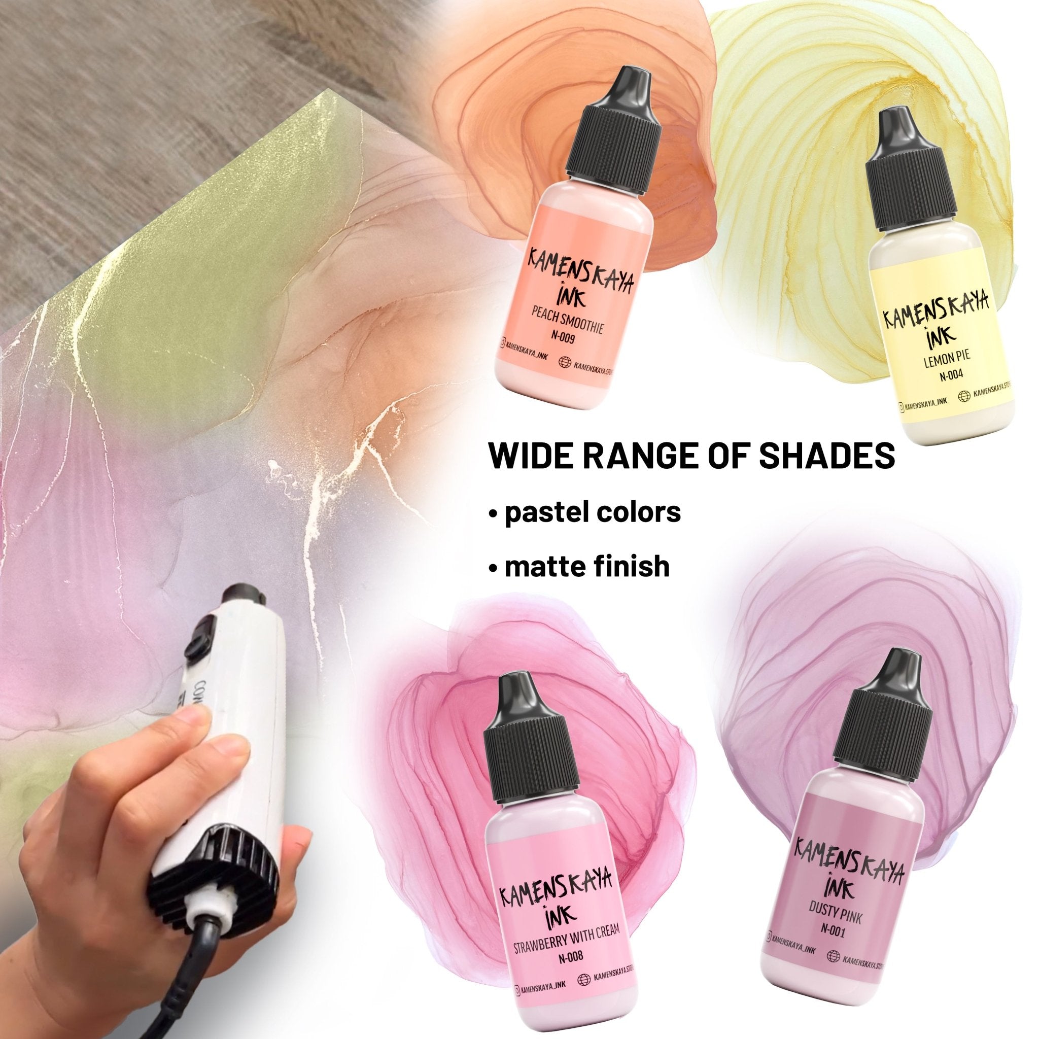 - Pastel Shade Line is a light color palette of alcohol inks with velvety finish, based on dye and pigment, for ink art and epoxy resin. The pigment provides a dense and opaque layer, while the dye is responsible for the color