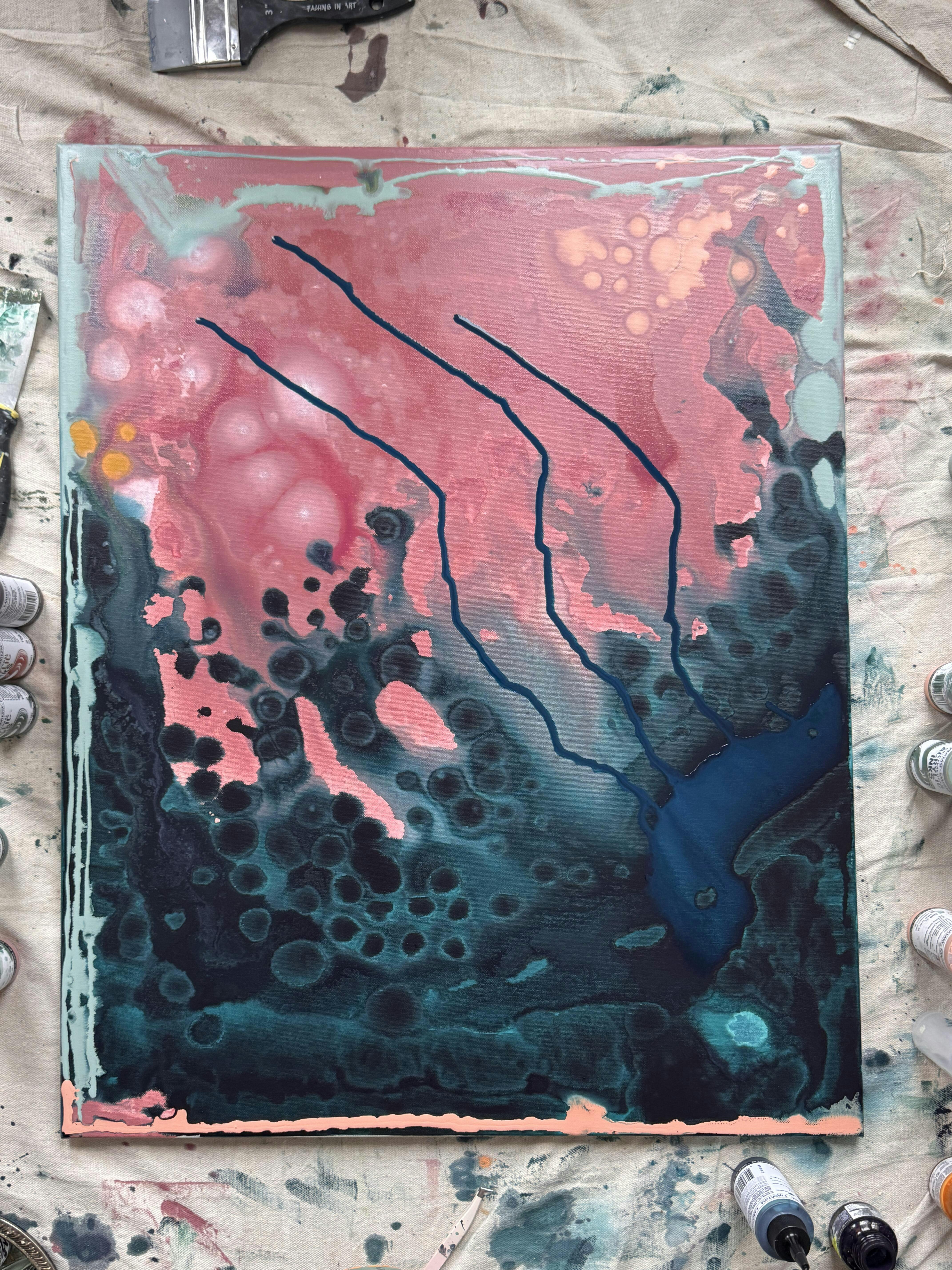 Encre acrylique super concentrée (peinture acrylique liquide) avec une formule plus épaisse pour une utilisation plus facile. Les encres changent d'épaisseur en fonction du support que nous utilisons avec elles. Nous pouvons passer d'une forme très liquide à une forme de peinture très épaisse, ce qui donne à l'artiste des options supplémentaires lorsqu'il travaille avec ce matériau. Les encres peuvent également être diluées avec de l'eau pour obtenir la consistance la plus liquide.