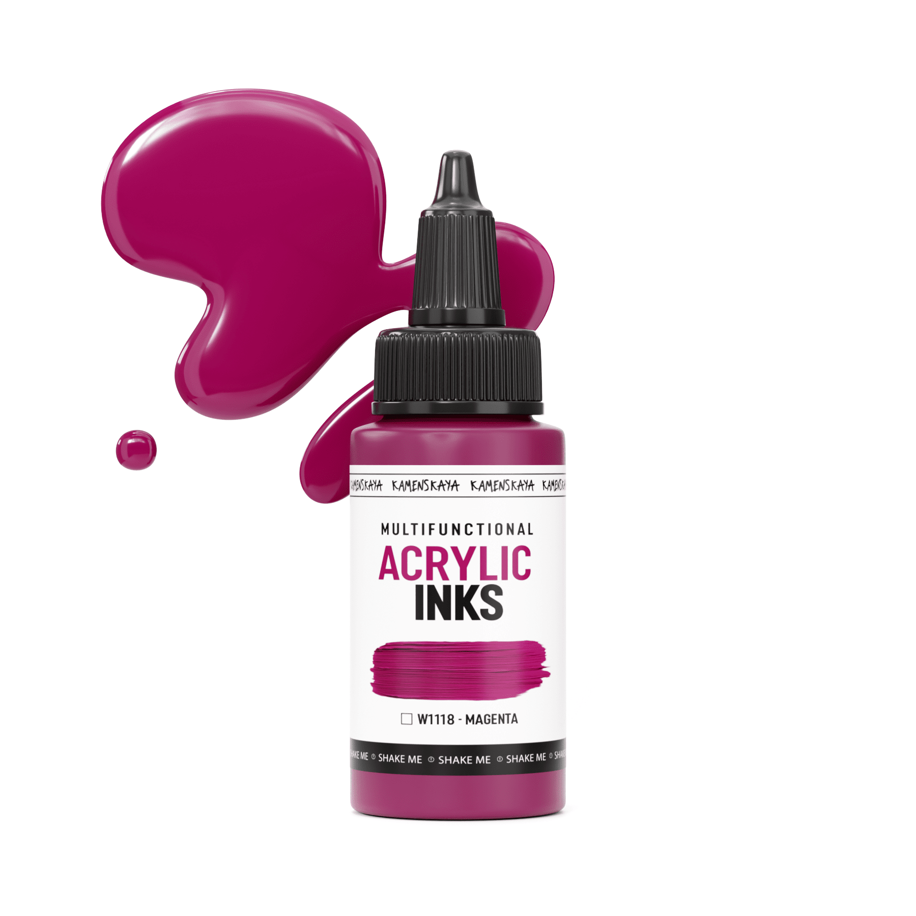 Super concentrated acrylic ink (liquid acrylic paint) with a thicker formula for ease of use. Inks change their thickness depending on the medium we use with them. We can get from a very liquid form to a very thick form of paint, which gives the artist additional options when working with this material. The inks can also be diluted with water to get the most liquid consistency.